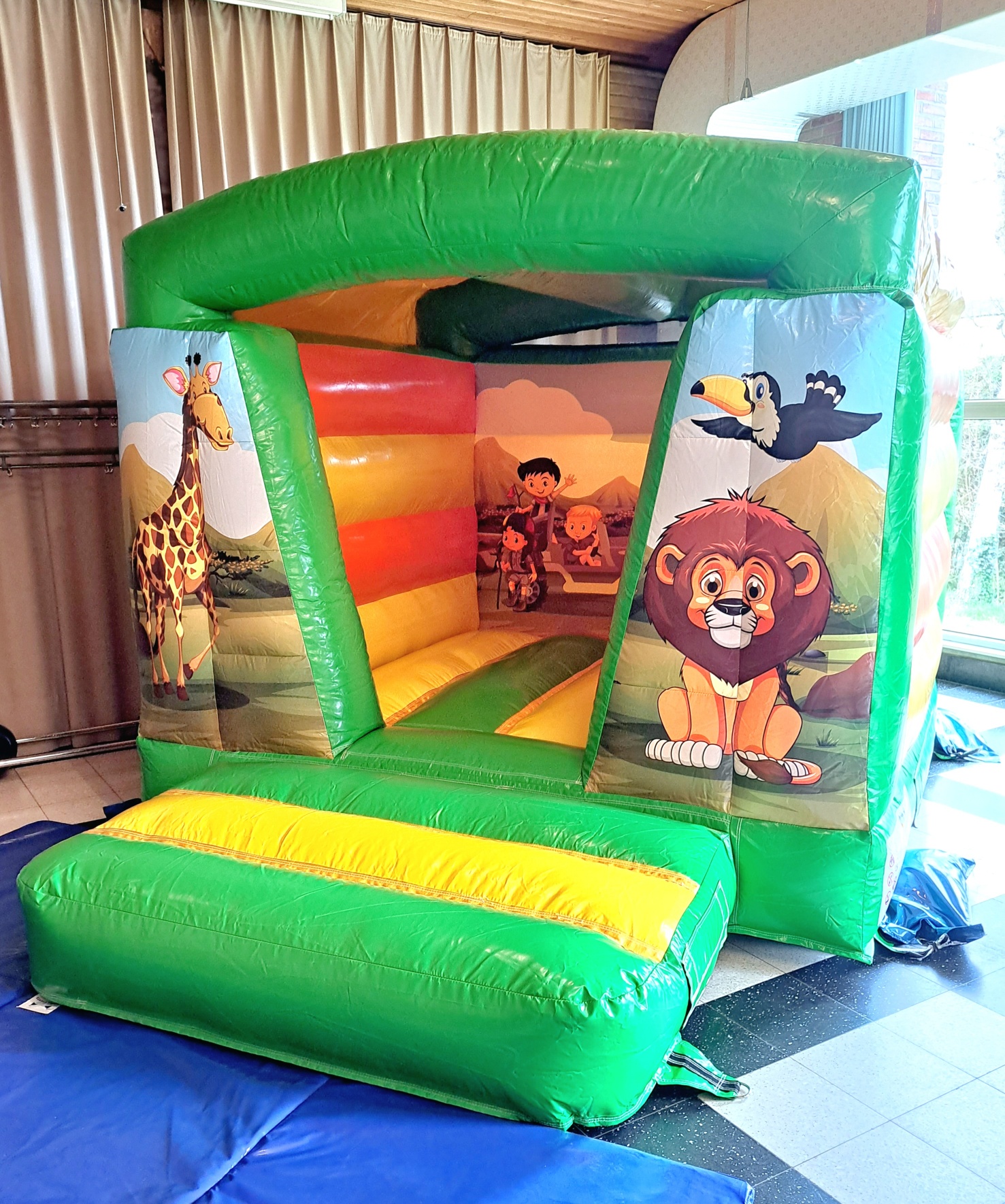 Krijg enorm veel plezier in een klein pakket! Met zijn compacte formaat is onze Mini Safari perfect voor evenementen en andere plaatsen waar de ruimte beperkt is. Maar laat je niet voor de gek houden door het kleine formaat! De Mini is net zo leuk als elk groot springkasteel.
